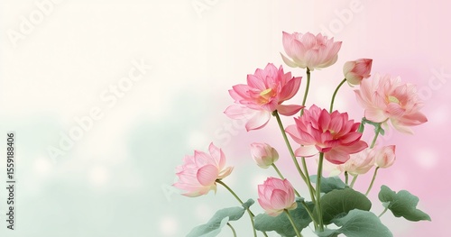 Beautiful Pink Lotus Blossoms in Soft Pastel Colors