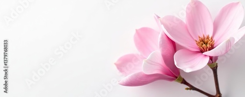 Beautiful pink magnolia flowers in full bloom against a clean white background, botanical, nature