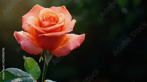 Beautiful pink rose with dew against a soft blurred background.
