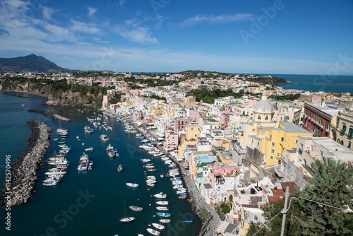 beautiful Procida island with colorful houses in sunny summer day, Italy