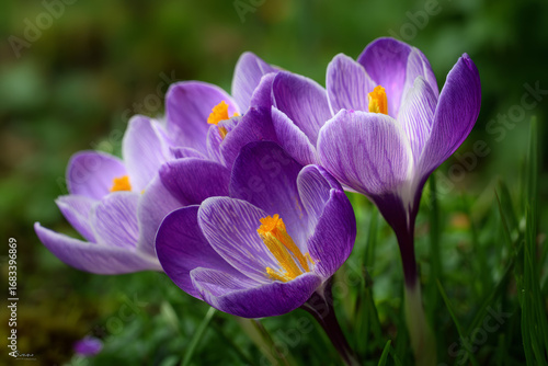Beautiful Purple Crocus Flowers Blooming in Spring