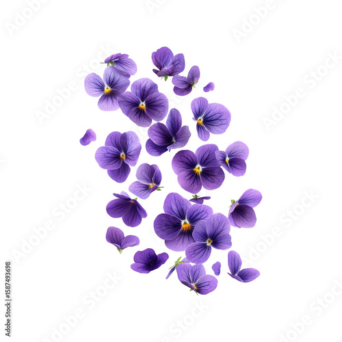 Beautiful purple pansy flowers isolated on white background. Perfect for floral, spring, garden, nature, wedding, and botanical design projects.