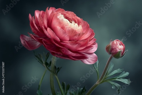 Beautiful ranunculus flower with soft pink petals against a blurred background, symbolizing love and elegance in nature