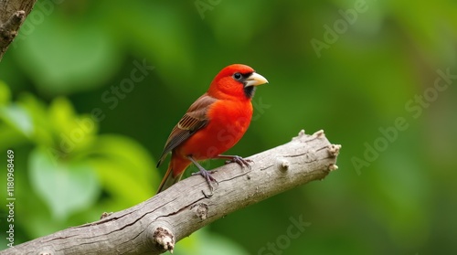 Beautiful red birds, including a cardinal and robin, perch on branches in colorful wildlife natureBeautiful red birds, including a cardinal and robin, perch on branches in colorful wildlife nature