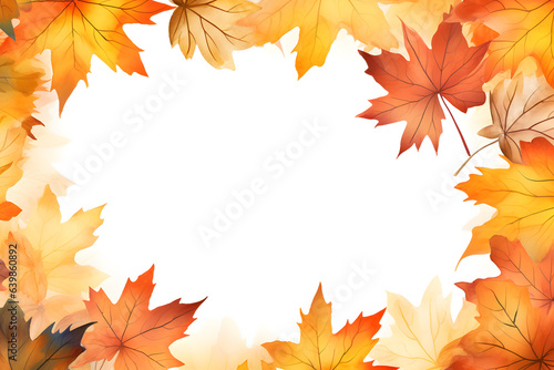 Beautiful red maple leaves frame on white background. Watercolor illustration background