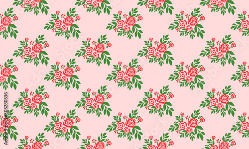 Beautiful red rose and flower leaves background.