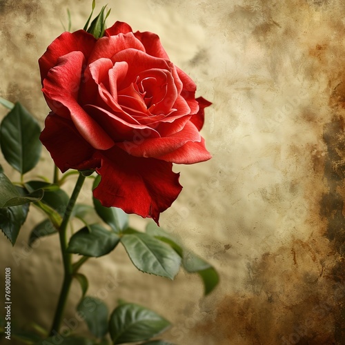 Beautiful Red Rose on retro grunge background, Ai Generated