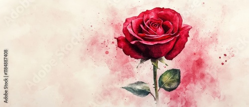 Beautiful Red Rose with Watercolor Background and Splashes of Color