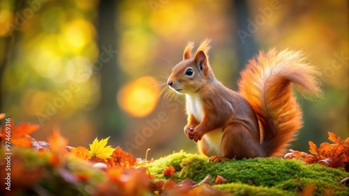 Beautiful red squirrel in a vibrant autumn forest scene, squirrel, red, autumn, forest, wildlife, nature, seasonal, foliage, leaves