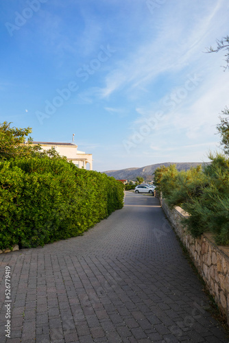 Beautiful road in the forest in the mountains. Landscape with road and nature.