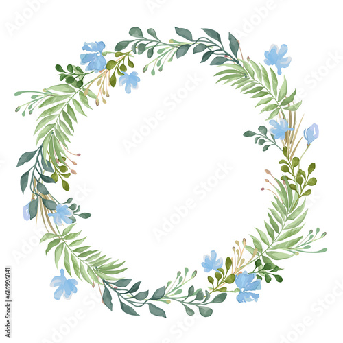 Beautiful romantic watercolor style floral round frame or wreath for your greeting card or invitation
