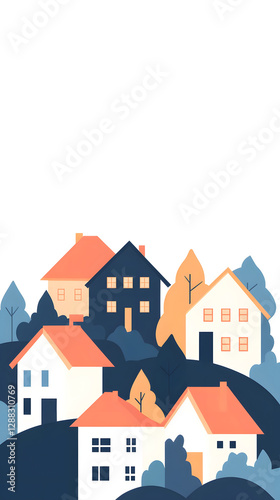 Beautiful rural buildings, rural landscape houses illustration