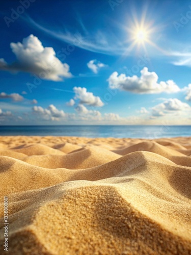 Beautiful sandy beach and blue sky with clouds. Beauty world.
