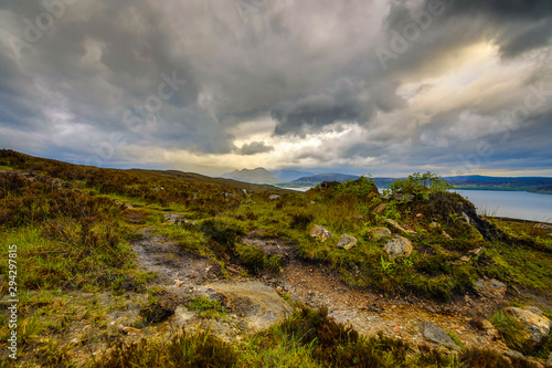 Beautiful scenic landscape of Scotland nature with beautiful evening sun set sky.