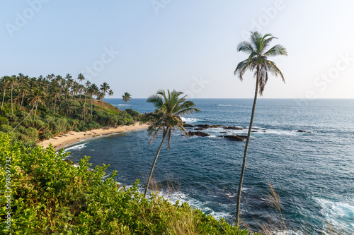 Beautiful scenic view of coastline with palm trees, sri lanka, mirissa