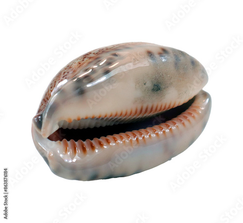 Beautiful sea shell Cypraea isolated on transparent, close-up, design element