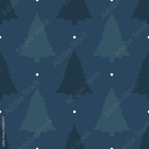 Beautiful seamless background for Merry Christmas or New year. Pine tree on a dark background. Pattern for wrapping paper or fabric. Vector.