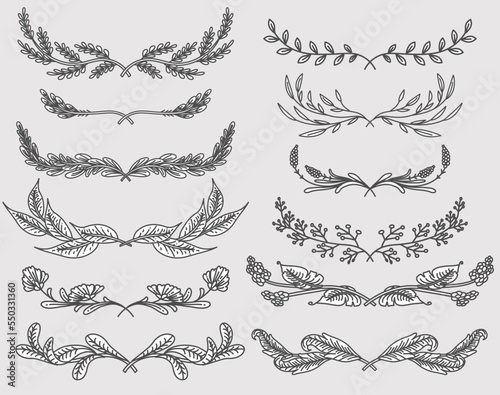 Beautiful set of rustic, romantic botanical laurel ornaments vector illustration
