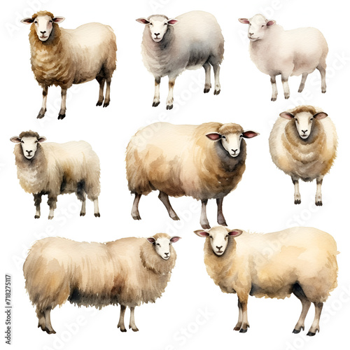 Beautiful Sheep Watercolor Clipart, Perfect Design for Your Project and Creations, Ai Generative