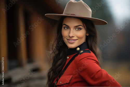Beautiful smiling young female Canadian mounty looking at the camera