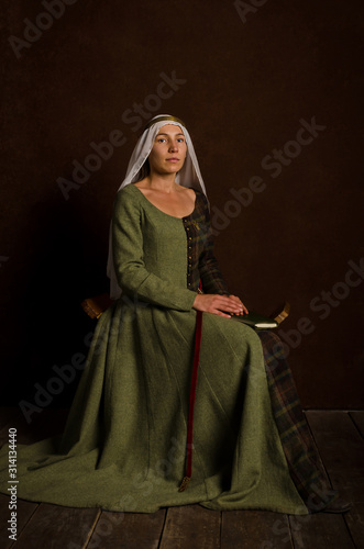 Beautiful sophisticated girl actress in a medieval costume of the 14th century central Europe. Hobby - reconstruction of historical events.