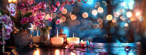 Beautiful spa composition on massage table in wellness center, Generative AI,