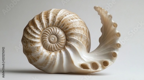 Beautiful Spiral Seashell on Soft Gray Background Close-Up View