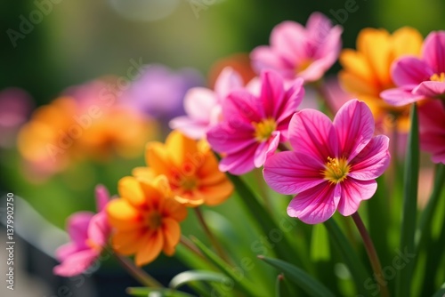 Beautiful spring primula flower arrangement in a garden, garden, flowers