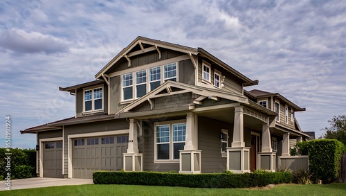 Beautiful Suburban Two Story House with Large Windows and Attached Garage