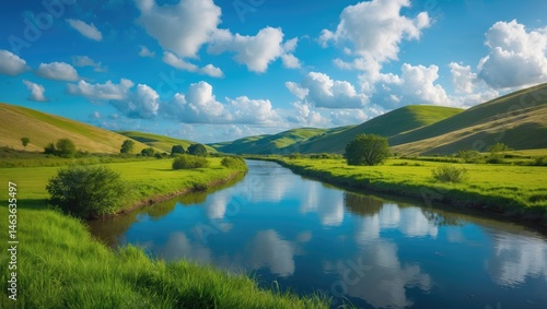Beautiful summer landscape featuring a blue sky and vibrant green grass