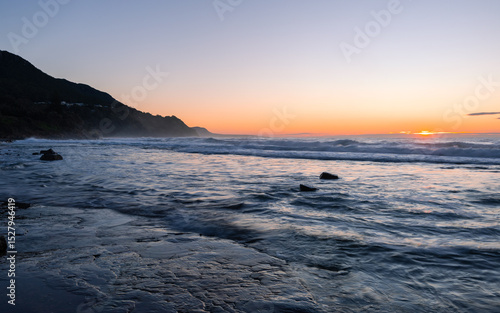 Beautiful sunrise view at the coastline of Wombarra Beach.