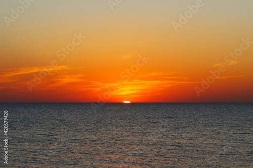 Beautiful sunset at the sea. Horizon. Selective focus. Background. Scenery. Texture.