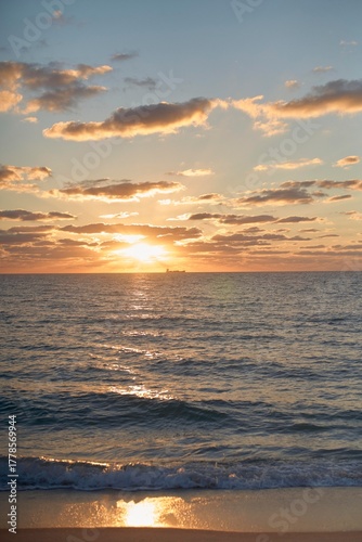 Beautiful Sunset Over Calm Ocean Waves Near the Beach