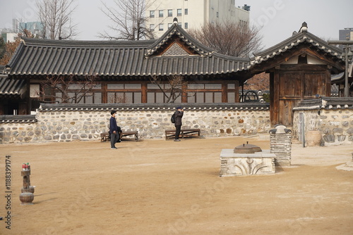Beautiful traditional Korean wooden architecture, showcasing the elegance of Hanok style buildings.