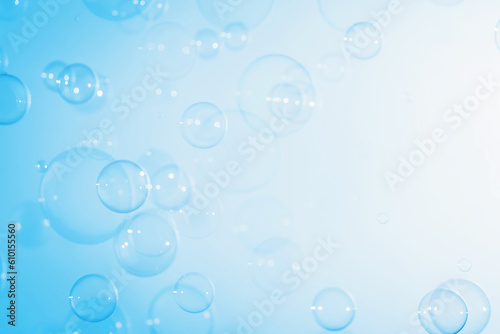 Beautiful Transparent A Blue Soap Bubbles. Abstract Background. A White Blank Space. Celebration Festive Backdrop. Freshness Soap Suds Bubbles Water