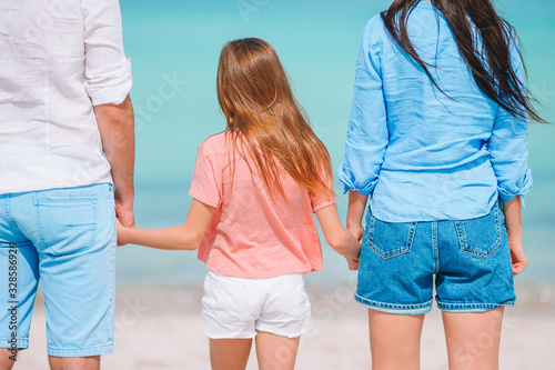 Beautiful tropical beach landscape with family enjoying summer vacation