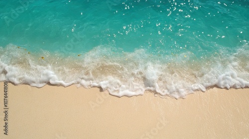 Beautiful Tropical Shoreline with Gentle Waves Lapping Against Soft Sandy Beach and Clear Turquoise Water Under Bright Blue Sky on Sunny Day