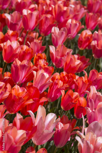 Beautiful tulips, fresh spring flowers, flowerbed in Emirgan city park, Istanbul, Turkey