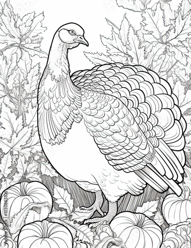 Beautiful Turkey Coloring Page, Thanksgiving Colouring Design for Your Corporate Books and Business Graphic Resource or Creative Project, Ai Generative