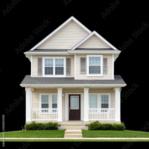 Beautiful Two-Story Contemporary House with Welcoming Front Porch and Lush Green Lawn in a Suburban Neighborhood