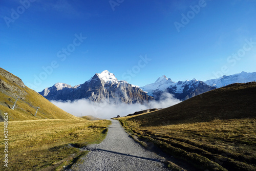 Beautiful view of a hiking trail in Grindelwald, Switzerland.