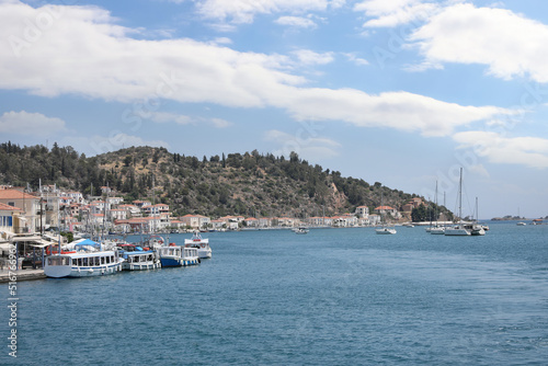 Beautiful view of coastal city with boats on sunny day
