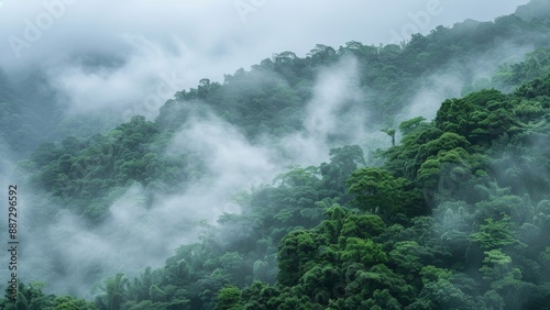 Beautiful view of green forest in foggy morning at Doi Inthanon National Park,