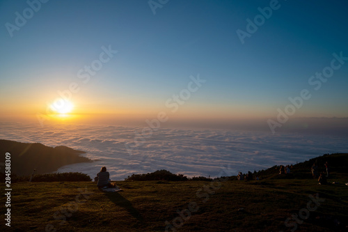 Beautiful view of sunset from Gomismta mountiain. Up in the air.