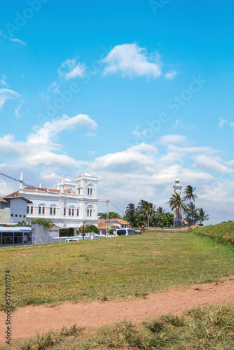 Beautiful view of the famous lighthouse in Fort Galle, Sri Lanka, on a sunny day