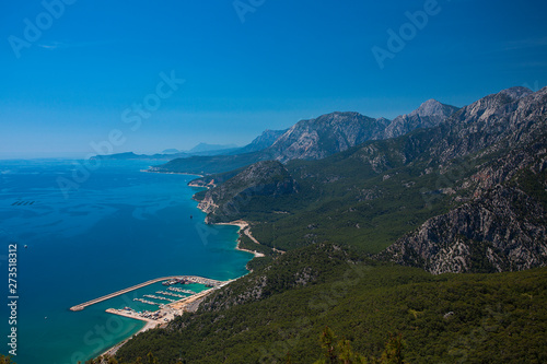 Beautiful view of the Mediterranean Sea, mountains and forest. Turkey, Antalya