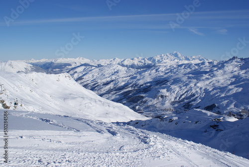 Beautiful view of the snowy French Alps, Les Menuires, France