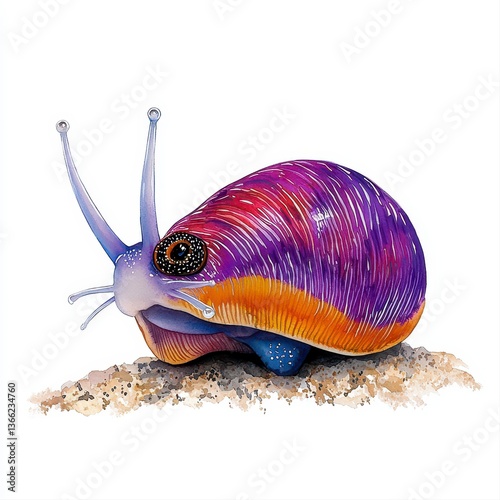 Beautiful watercolor illustration of a snail isolated on a clean white background for artistic and educational use