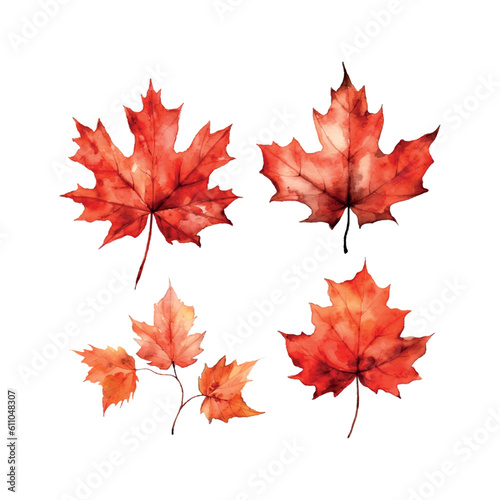 Beautiful watercolor red maple leaf Canada day white background.