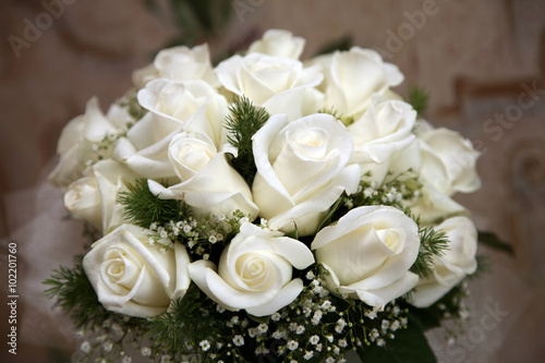 beautiful wedding bouquet of white roses
